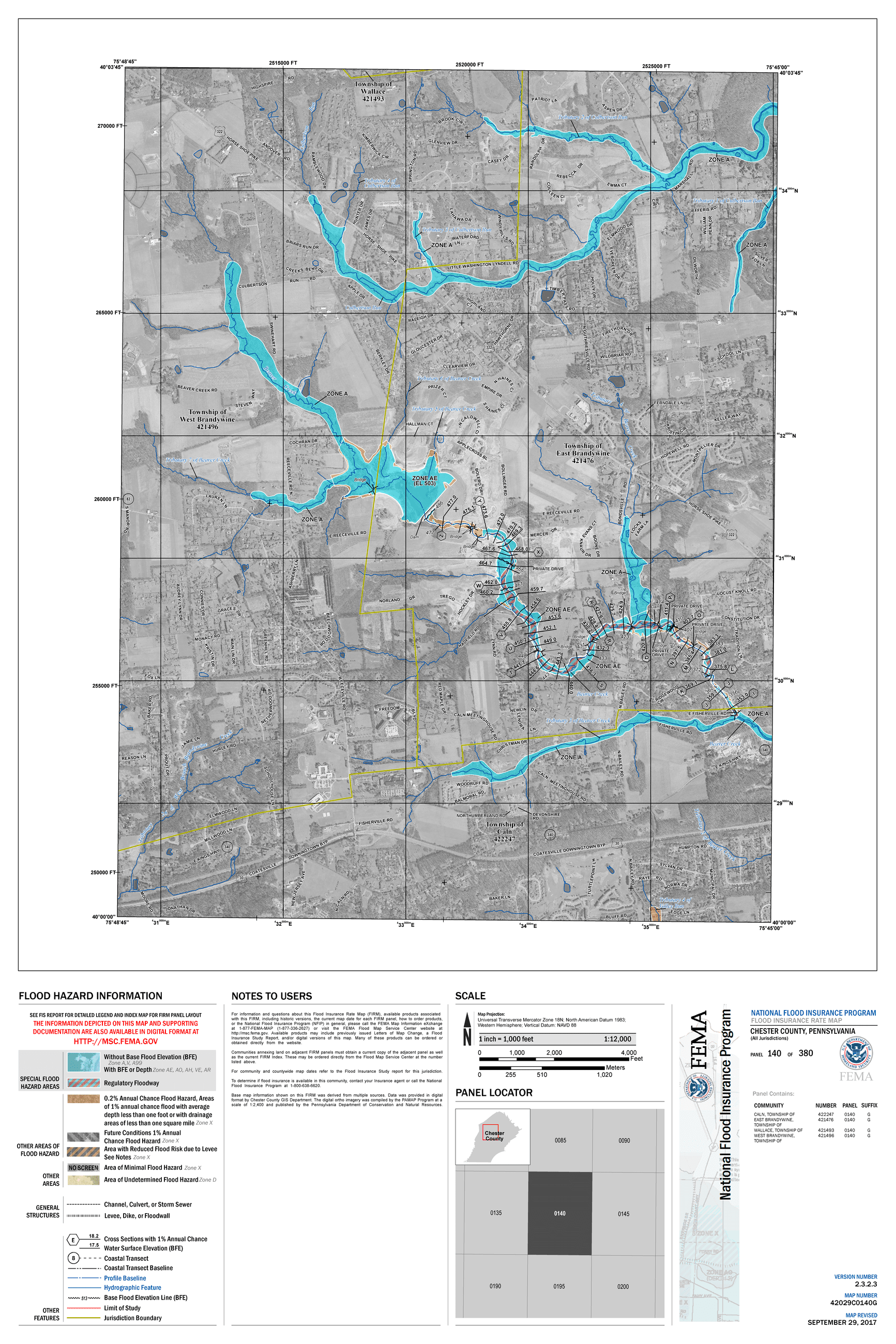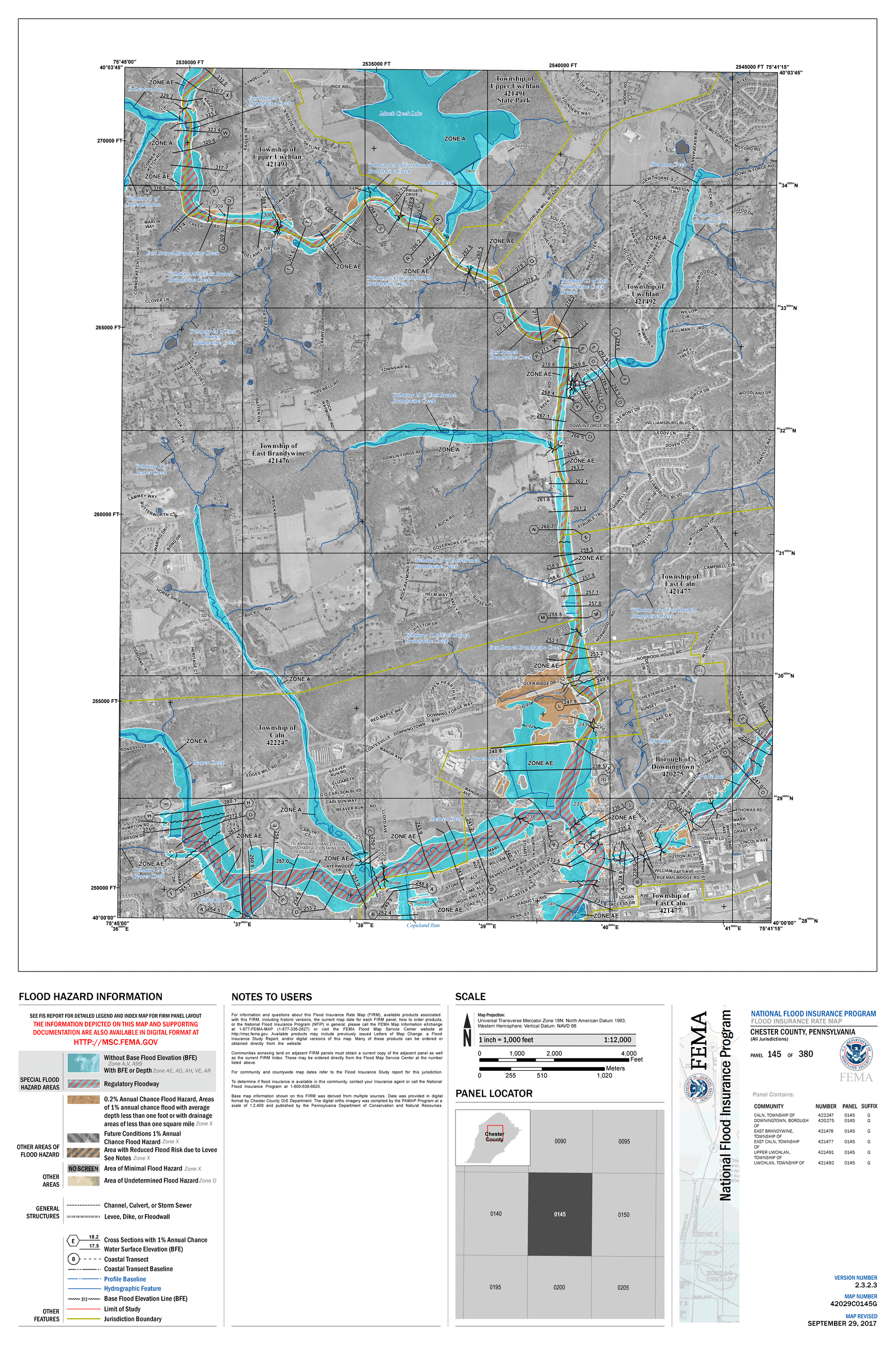 - First, you may select one of the three "panels" of the FIRM map that cover East Brandywine Township as shown on the bottom of this page. For each panel, both 2006 maps and the new 2017 maps are available as links in the table.
