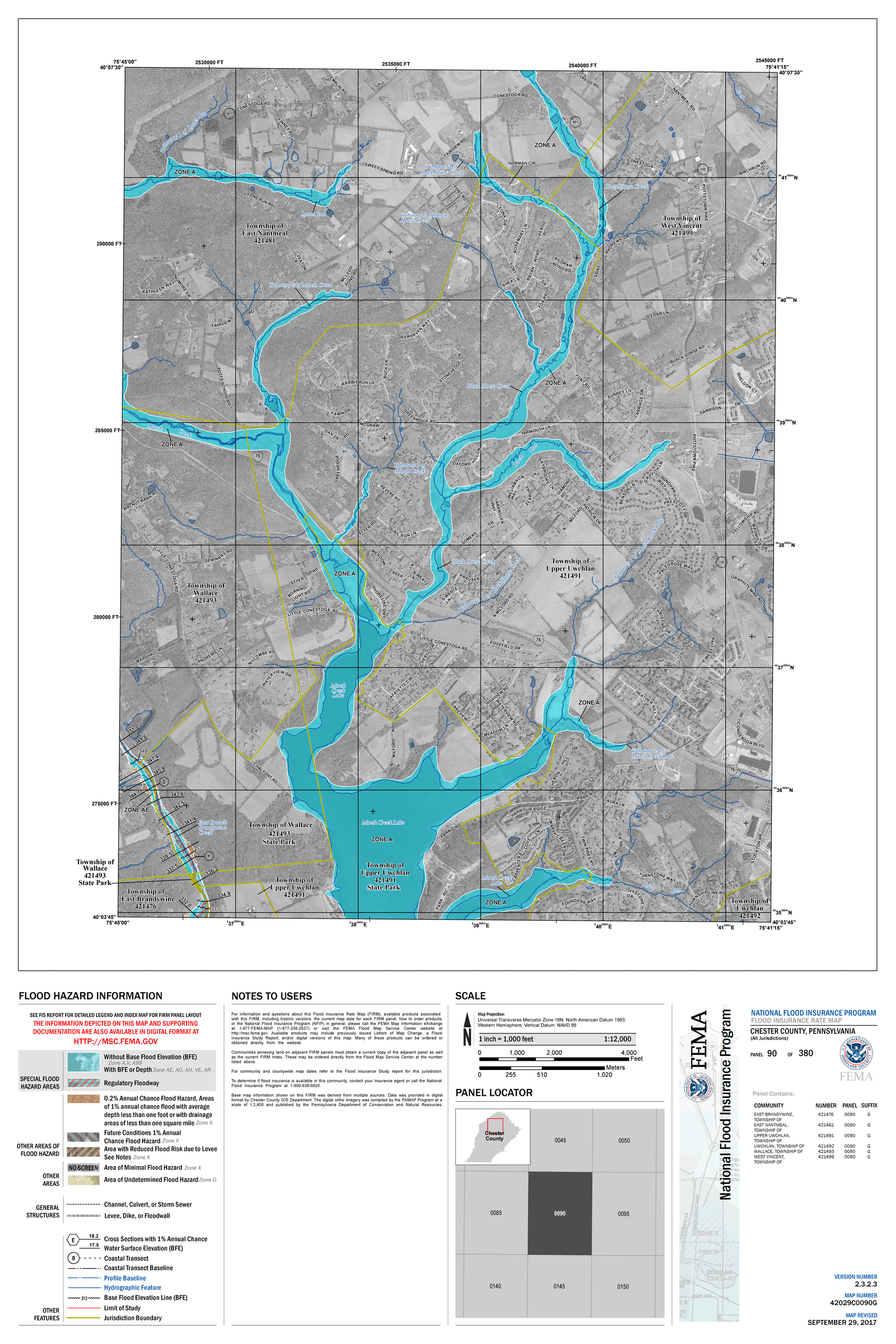 The Federal Emergency Management Agency (FEMA) has updated the Chester County Flood Insurance Rate Map (FIRM Map). This change will take effect on September 29, 2017. As the FIRM map determines if property owners are required to purchase flood insurance, East Brandywine Township wants residents to be informed of these changes. The Township cannot, however, make final determinations on whether or not a parcel is within a floodplain or if flood insurance will be required.